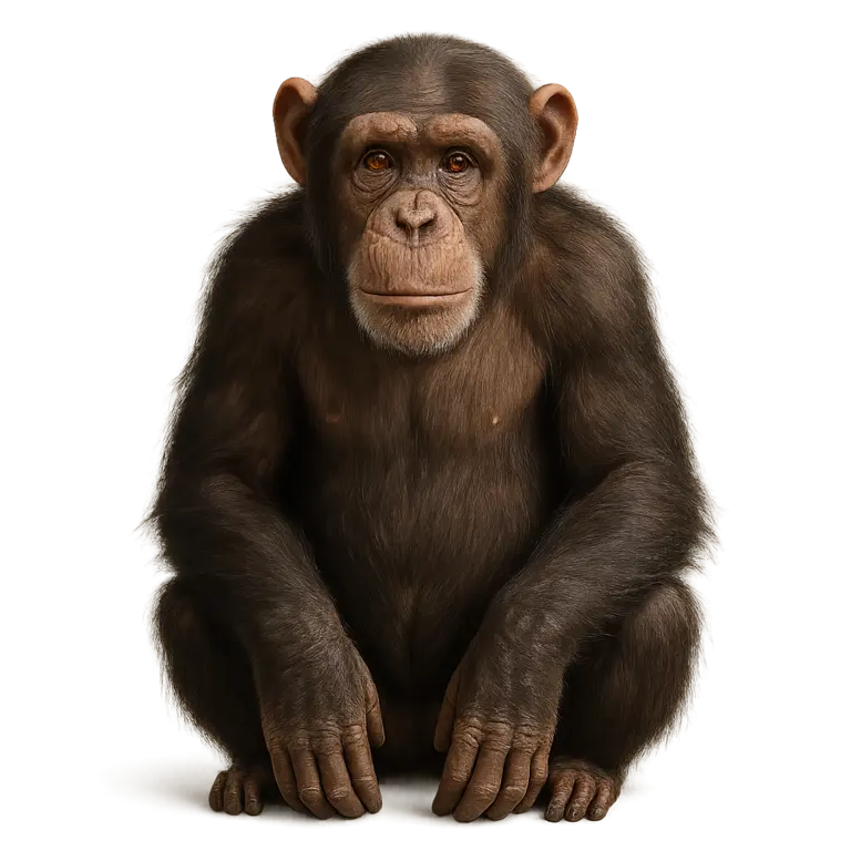 Der Schimpanse ist ein hochintelligentes Säugetier, das in den Wäldern und Savannen Afrikas lebt. Er ist bekannt für seine sozialen Fähigkeiten und seine enge genetische Verwandtschaft zum Menschen. Schimpansen haben ein dichtes, dunkelbraunes bis schwarzes Fell und lange Arme, die ihnen helfen, sich geschickt durch die Bäume zu bewegen.