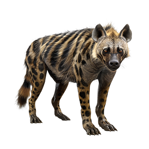 Die Streifenhyäne ist ein mittelgroßes Raubtier, das in Teilen Afrikas, des Nahen Ostens und Asiens vorkommt. Sie ist leicht an ihrem grauen bis gelbbraunen Fell mit markanten schwarzen Streifen an den Flanken, Beinen und über dem Rücken zu erkennen. Streifenhyänen haben eine kräftige Statur, einen großen Kopf und starke Kiefer, die ihnen helfen, Knochen zu zerkauen.