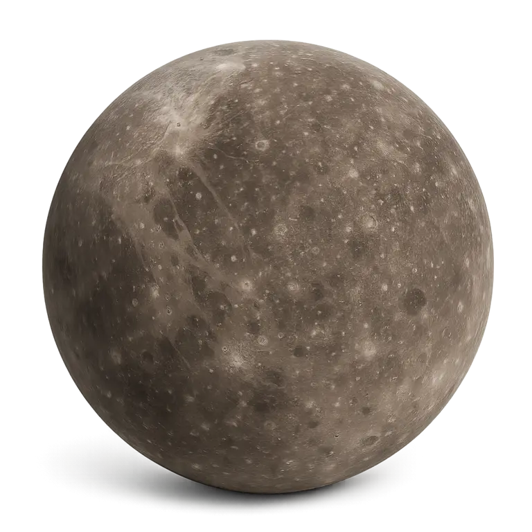Ganymed ist der größte Mond des Planeten Jupiter und zugleich der größte Mond im gesamten Sonnensystem. Mit einem Durchmesser von etwa 5.268 Kilometern übertrifft er sogar den Planeten Merkur. Er wurde 1610 von Galileo Galilei entdeckt und gehört zu den vier sogenannten Galileischen Monden des Jupiter. Ganymed besteht aus einer Mischung aus Gestein und Wassereis und besitzt eine differenzierte innere Struktur mit einem metallischen Kern, einer silikatischen Mantelschicht und einer eisigen Kruste.