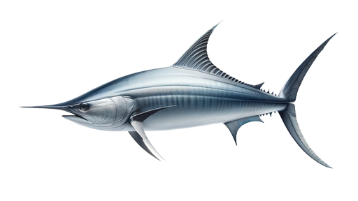 Der Schwertfisch (Xiphias gladius) ist bekannt für sein flaches "Schwert", eine Verlängerung des oberen Kiefers, das er zum Stich und Betäuben der Beute nutzt. Diese Fische können bis zu 4,5 Meter lang werden und leben in den offenen Ozeanen der tropischen bis gemäßigten Gewässer.